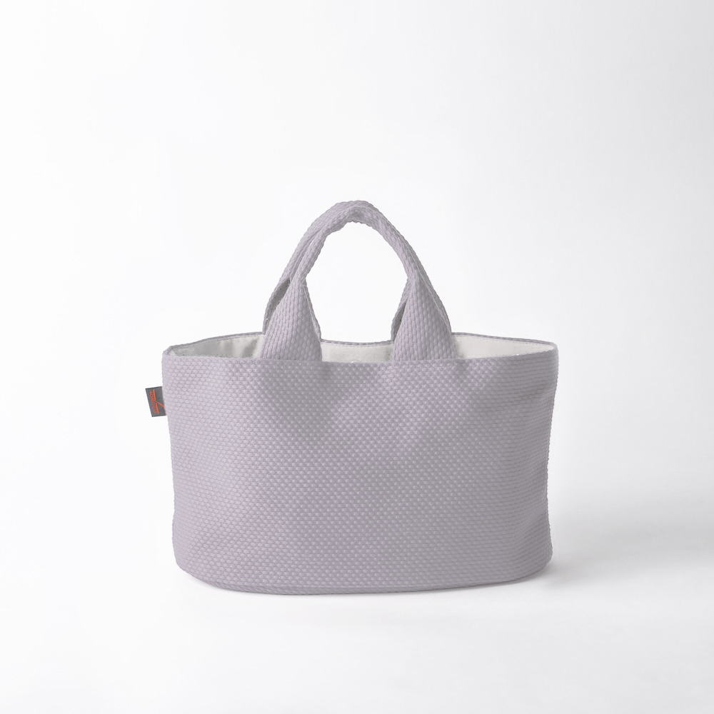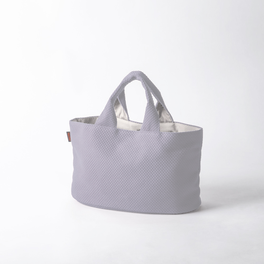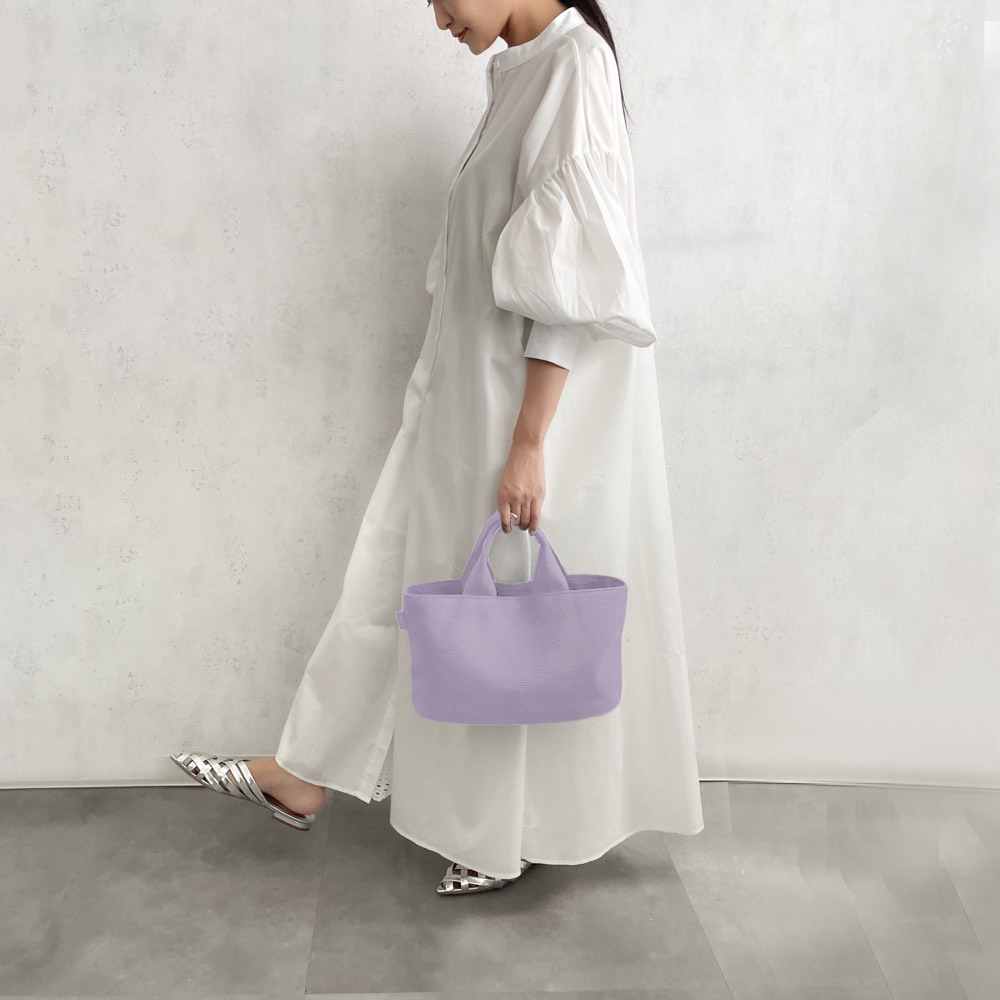 バッグの底が楕円形で、横長サイズのコロンとした個性的なミニトートバッグ。コンパクトな見た目とは裏腹に、マチがしっかりあるので見た目以上の収納力が備わっています。日常使いのバッグとしても、ランチトートとしても幅広く使える一品です。
