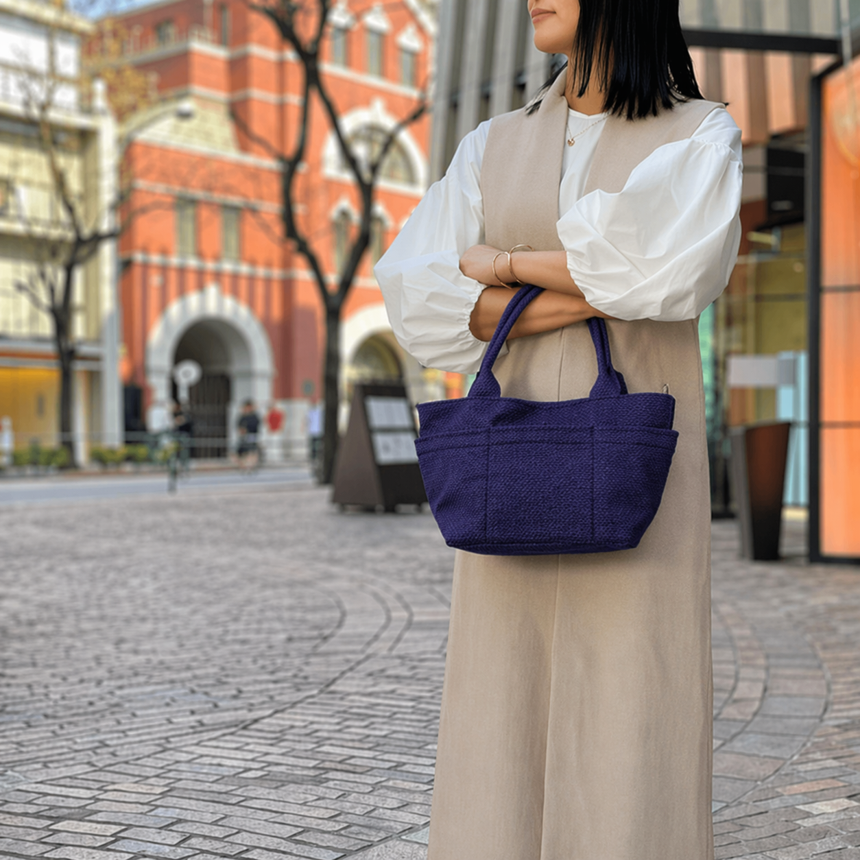 インスタでたまたま拝見してからずっと気になっていて、元々使っていたバッグを使い倒していよいよこちらを購入しました。思っていたより小ぶりで思っていたより生地が柔らかかったです。ポケットがたくさんあるのもありがたいのですが、水筒用のポケットがあるとより嬉しいです。肩かけができて最低限の荷物が入るのでこれからたくさん使いたいと思います!次はリボントートを買うつもりです。(2023/07/09 19:03)れおん さま ★ ★ ★ ★ ★