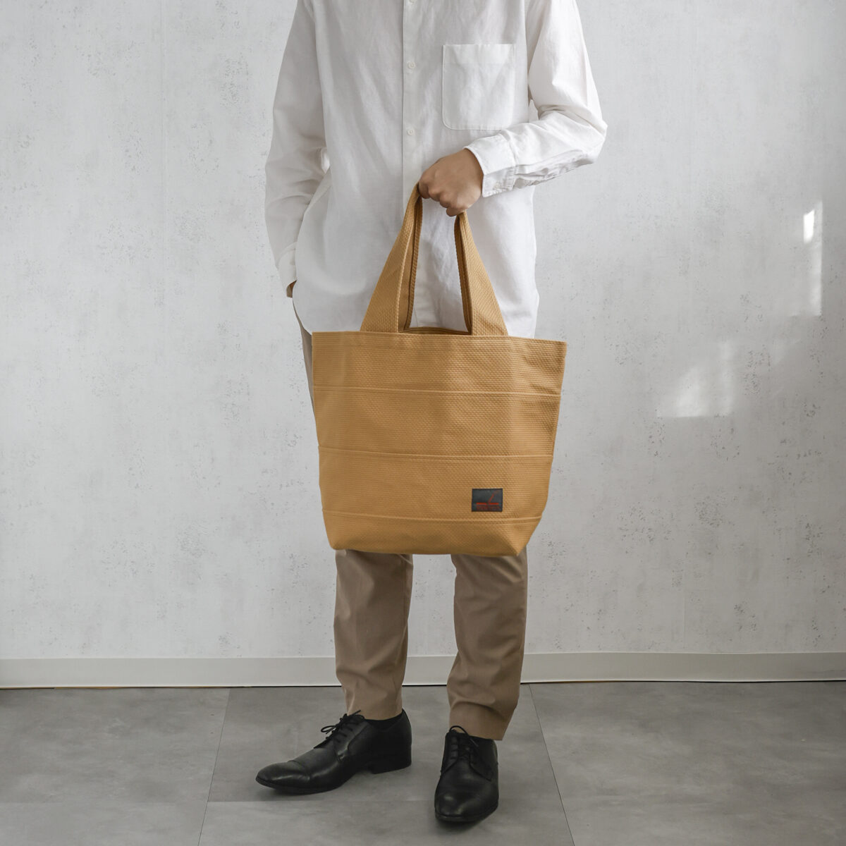 収納力に長けていて、たくさんの荷物をたっぷり入れられる大きめのトートバッグ。刺し子織の生地が肌にやさしく、肩に掛けても手持ちでも重たい荷物を持った際の負担を軽減します。内側には長財布もすっぽり入る機能的なポケットがついています。8色のカラーバリエーションから好みの色を選べ、普段使いに最適なバッグです。折りたためるので、旅先の荷物が増えた際に使うセカンドバッグとしてもオススメ。